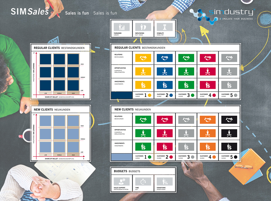 Pe parcursul derulării simulării, participanții trebuie sa construiască si sa crească relații cu clienții. Obiectivul este de a obține eficiență la cel mai bun scor- “Highest Score of Commercial Efficiency”.